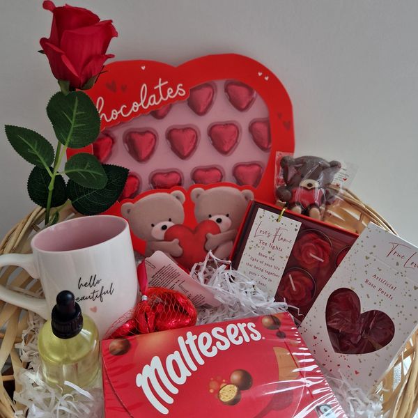 A perfect gift for Valentine's Day- show you care with our amazing Valentine hampers packed with lots of treats and gifts.